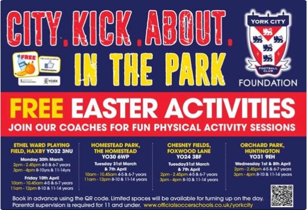 Looking for something to do with the kids/grandchildren. York City Foundation are running some fantastic FREE sessions across York. Please take a look at the below poster.
